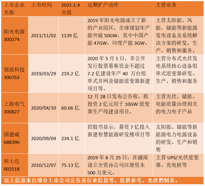 值得一提的是,國內(nèi)以微型逆變器為主營業(yè)務(wù)的逆變器企業(yè)——杭州禾邁在2020年底申請科創(chuàng)板上市已獲受理,擬募資5.58億元。如果成功過會,禾邁將成為中國光伏市場上第一支微型逆變器企業(yè),同樣以微逆為主要產(chǎn)品的昱能科技也已經(jīng)邁入上市輔導(dǎo)階段。至此,中國逆變器企業(yè)全線涵蓋各種逆變器類型,并且快速步入上市階段。