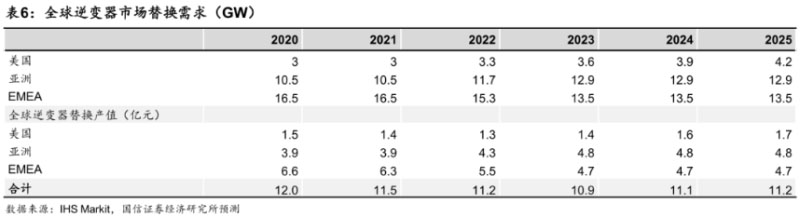 據(jù)國信證券分析,全球光伏新增裝機在2011年首次突破31GW,以逆變器更換周期為10年計算,預(yù)計未來五年每年光伏逆變器更換需求穩(wěn)定在30GW左右,按照各地工商業(yè)分布式的單價測算每年更換需求產(chǎn)值接近10億元人民幣。