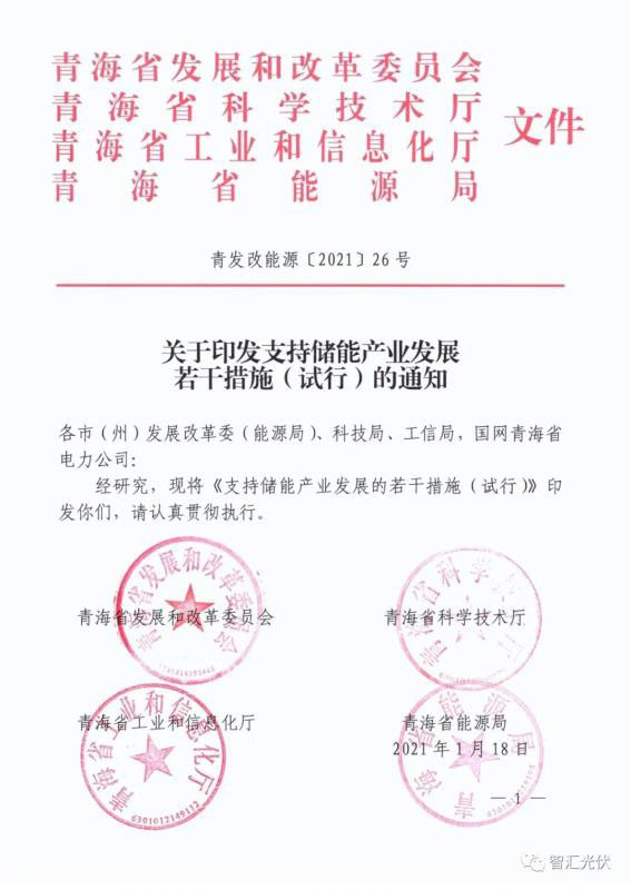 中國(guó)儲(chǔ)能網(wǎng)訊:1月18日,青海省發(fā)改委、科技廳、工信廳、能源局聯(lián)合下發(fā)《關(guān)于印發(fā)支持儲(chǔ)能產(chǎn)業(yè)發(fā)展若干措施(試行)的通知》,文件明確: