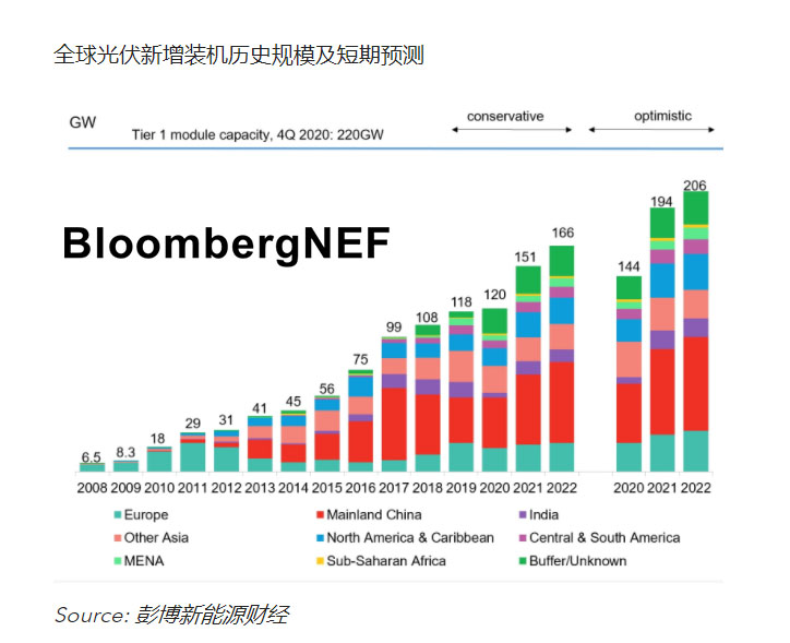 我們預(yù)計(jì)2021年光伏行業(yè)將迎來繁榮,主要?jiǎng)恿τ卸阂皇切袠I(yè)基本需求增長,二是2020年項(xiàng)目建設(shè)受阻,延遲至2021年并網(wǎng)。