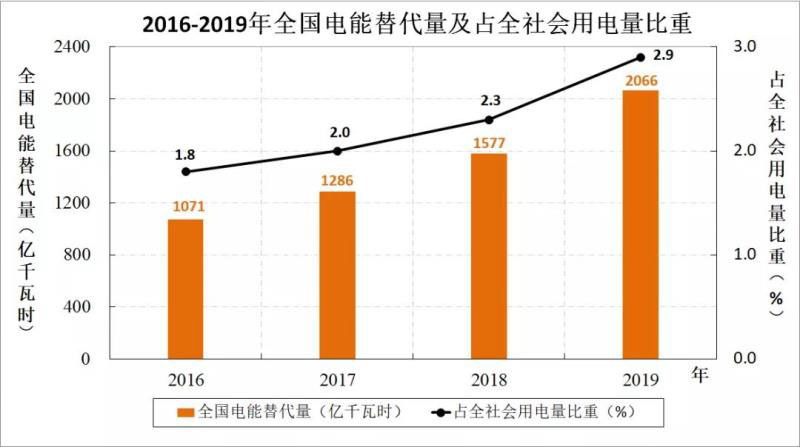 據(jù)國家能源局?jǐn)?shù)據(jù),“十三五”前四年,全國新增電能替代用電量6000億千瓦時,已遠(yuǎn)超電力“十三五”規(guī)劃提出的4500億千瓦時的目標(biāo)。2020年前三季度新增電能替代用電量超過1800億千瓦時。