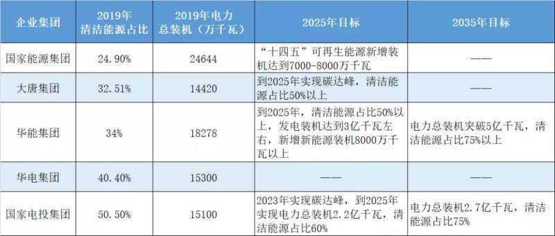 五大發(fā)電集團清潔能源發(fā)展目標