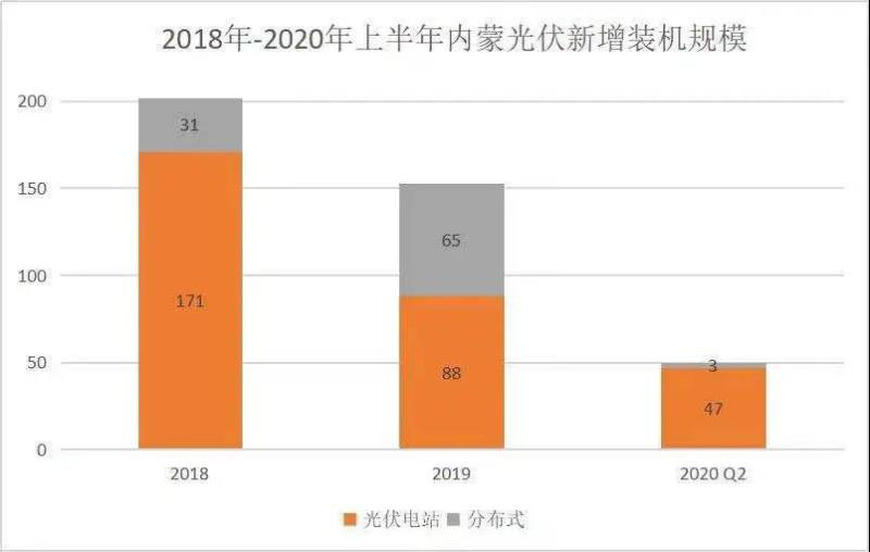 圖片:2018-2020年上半年內(nèi)蒙光伏裝機情況(萬千瓦),數(shù)據(jù)來源:能源局