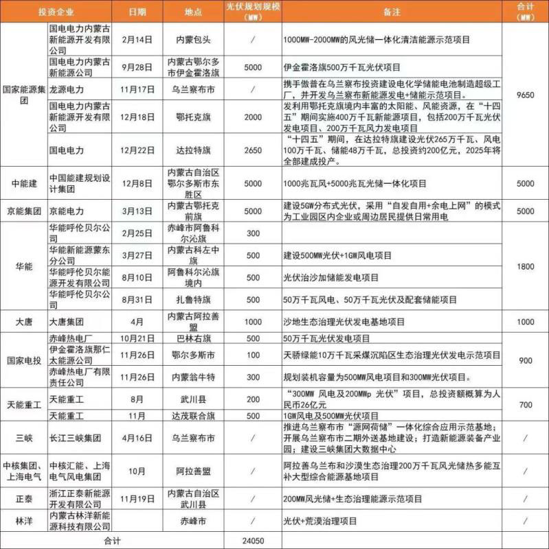 需要特別指出的是,風光大省內(nèi)蒙是2020年以來各投資企業(yè)最為青睞的省份之一,據(jù)統(tǒng)計,2020年內(nèi)蒙簽約的光伏項目規(guī)模將近25GW,幾乎囊括了國家能源集團、華能、大唐、國家電投、三峽、中核等主流的光伏電站投資商。
