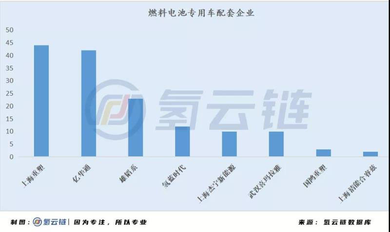 從燃料電池汽車系統(tǒng)配套來看,此次共有8家燃料電池系統(tǒng)商企業(yè)為其配套。其中上海重塑在系統(tǒng)配套數(shù)量44輛排名第一,緊追其后的億華通系也以40輛,在系統(tǒng)裝機(jī)量上僅略少于上海重塑,排名第二;雄韜氫雄系以23輛排名第三;深圳氫藍(lán)時(shí)代以12輛排名第四;上海杰寧新能源與武漢喜瑪拉雅均有10輛專用車配套,并列第五;國鴻重塑和上海清能合睿茲也分別配套3輛和2輛,排名緊隨其后。