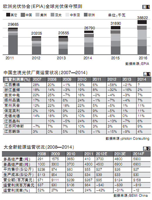中國(guó)絕大多數(shù)多晶硅廠商前景暗淡,那么硅片、電池片、模組等下游廠商的狀況又如何呢?從去年第二、三季度開(kāi)始,中國(guó)主流的光伏廠商的運(yùn)營(yíng)就已經(jīng)開(kāi)始出現(xiàn)赤字,而且虧損的嚴(yán)重程度在不斷加劇。更為令人不安的是,這些公司的運(yùn)營(yíng)狀況有可能要一直等到2014年才能有所改善(表1)。中國(guó)公司在經(jīng)歷了2009年的低潮之后,托歐洲市場(chǎng)之福,2010年經(jīng)營(yíng)狀況大幅改善。但盲目地?cái)U(kuò)大產(chǎn)能、一味追求“高大全”的垂直整合模式迅速導(dǎo)致了全球產(chǎn)能的過(guò)剩,這不但在歐美引起了一片抵制中國(guó)公司和產(chǎn)品的雜音而且最終還危及了中國(guó)公司本身的盈利能力。這再次印證了近20年來(lái)制造業(yè)的一個(gè)“中國(guó)現(xiàn)象”—不管什么東西,如果中國(guó)人能夠大規(guī)模地制造了,結(jié)果很快變得大家都沒(méi)錢(qián)賺。反過(guò)來(lái)講,這大概也算是中國(guó)對(duì)世界的貢獻(xiàn)吧。用一些中國(guó)光伏企業(yè)老總自己的話來(lái)講,中國(guó)人是在(全世界)開(kāi)拓一個(gè)廉價(jià)的平民光伏時(shí)代。一旦這個(gè)廉價(jià)光伏時(shí)代真的來(lái)了,現(xiàn)在的很多開(kāi)拓者也許會(huì)被列入“先烈”的名單了,而未來(lái)的市場(chǎng)主宰者將是非常另類的公司。沒(méi)有“水晶球”來(lái)透析未來(lái),但目前的市場(chǎng)數(shù)據(jù)表明,中國(guó)70-80%的光伏公司在未來(lái)2-3年里將難以為繼,大量過(guò)剩的產(chǎn)能將被淘汰,以換取利潤(rùn)的回升,這樣少數(shù)的幸存者才可以在一個(gè)“廉價(jià)光伏時(shí)代”里繼續(xù)偷生。