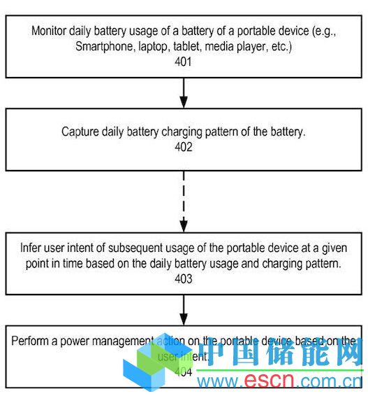 這項(xiàng)專利題為“基于電池使用率級(jí)別和充電趨勢(shì)來推斷用戶意圖”,文件詳細(xì)介紹了一種能夠在移動(dòng)設(shè)備上監(jiān)控電池充/放電周期并獲取相關(guān)信息來預(yù)測(cè)用戶在特定任何時(shí)間內(nèi)操作意圖的方法,移動(dòng)設(shè)備可以利用這些預(yù)測(cè)數(shù)據(jù)來改變各種參數(shù),如屏幕亮度、CPU 時(shí)鐘速度等,從而延長電池壽命或者提供最大的處理能力。
