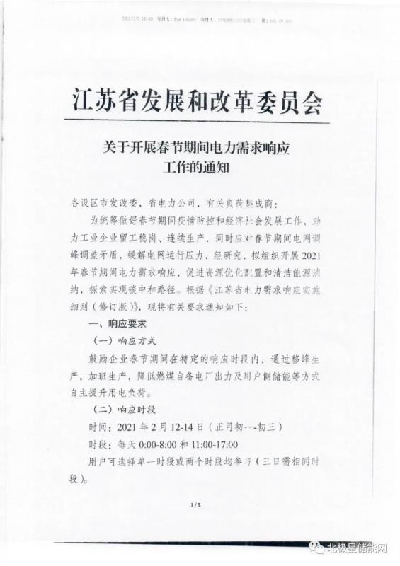 近日,江蘇發(fā)改委發(fā)布《關(guān)于開展春節(jié)期間電力需求響應(yīng)工作的通知》,為應(yīng)對(duì)春節(jié)期間電網(wǎng)調(diào)峰調(diào)差矛盾,緩解電網(wǎng)運(yùn)行壓力,擬于2021年2月12日至14日(正月初一至初三)組織開展2021年春節(jié)期間電力需求響應(yīng),重點(diǎn)鼓勵(lì)訂單多、任務(wù)重的企業(yè)通過加班生產(chǎn)、降低燃煤電廠出力及用戶側(cè)儲(chǔ)能等方式自主提升用電負(fù)荷。