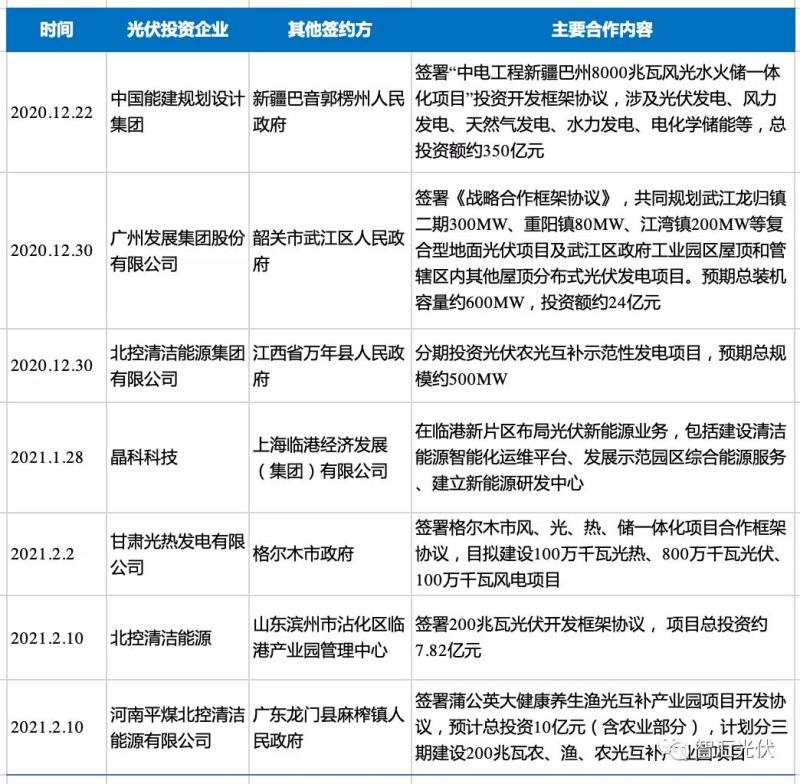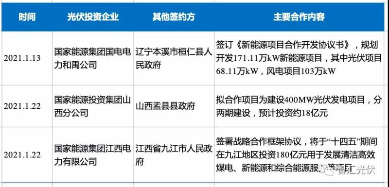 “3060”目標(biāo)下,各企業(yè)普遍大幅調(diào)高了2021年、“十四五”期間的新能源發(fā)展目標(biāo)。新年伊始,就簽約了大量的項(xiàng)目資源。本文近期簽約的項(xiàng)目進(jìn)行了整理。