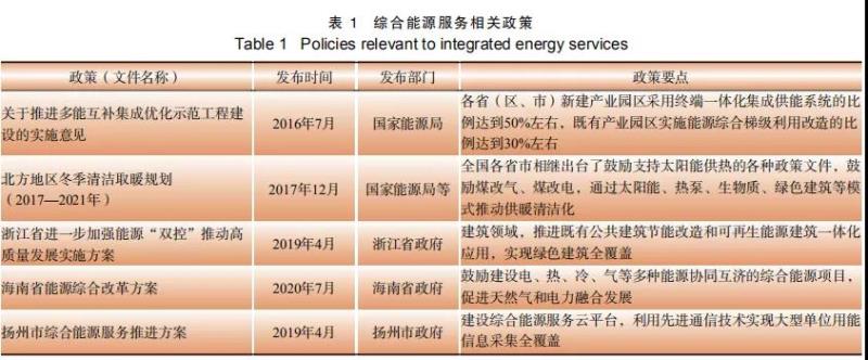 能源系統(tǒng)轉(zhuǎn)型與能源服務(wù)升級(jí)相伴而生、互促發(fā)展,能源系統(tǒng)轉(zhuǎn)型是物理基礎(chǔ),決定了能源服務(wù)升級(jí)的發(fā)展方向。隨著中國能源革命的縱深推進(jìn),能源生產(chǎn)方式和能源消費(fèi)理念發(fā)生深刻變化,能源生產(chǎn)由供給側(cè)向終端用戶側(cè)延伸,能源消費(fèi)理念從能源供應(yīng)向能源服務(wù)轉(zhuǎn)變。在此背景 下,綜合能源服務(wù)應(yīng)運(yùn)而生。綜合能源服務(wù)是面向能源系統(tǒng)終端,以用戶需求為導(dǎo)向,通過能源品種組合或系統(tǒng)集成、能源技術(shù)或商業(yè)模式創(chuàng)新等方式,使用戶收益或滿足感得到提升的行為。作為能源服務(wù)的高級(jí)形態(tài),綜合能源服務(wù)旨在提供符合能源發(fā)展方向、契合用戶實(shí)際需求的能源解決方案,是推動(dòng)能源革命的重要舉措[1-2]。同時(shí),綜合能源服務(wù)能夠有效提升能效、促進(jìn)清潔能源利用,大力發(fā)展綜合能源服務(wù)將是推進(jìn)中國能源低碳發(fā)展、實(shí)現(xiàn)2030年前碳達(dá)峰目標(biāo)和2060年前碳中和愿景的關(guān)鍵著力點(diǎn)。