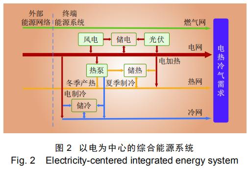 因此,以電為中心發(fā)展綜合能源服務(wù)(如圖 2 所示)將是適合中國國情和能源發(fā)展趨勢(shì)的必然 選擇。