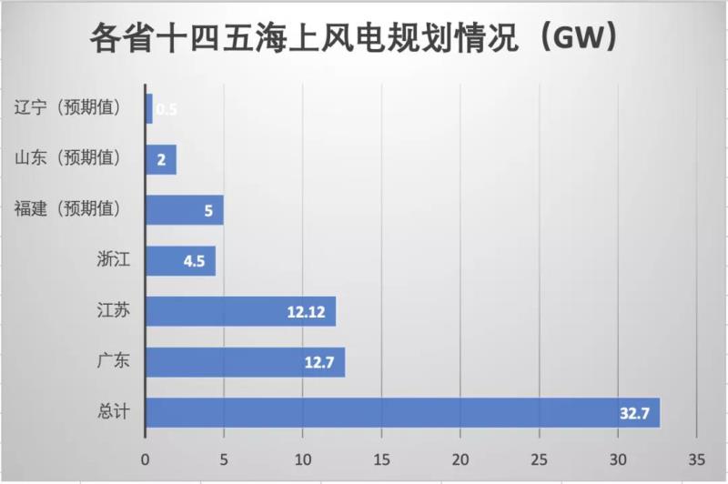 根據(jù)國信證券經(jīng)濟研究所預(yù)測,“十四五”期間,各省海上風電規(guī)劃規(guī)模將達到32.7GW,其中2021年的預(yù)期建設(shè)量將達到8.3GW。