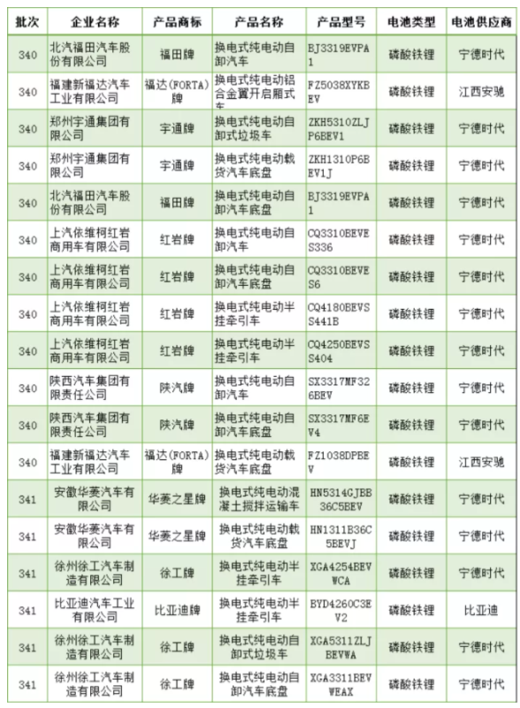 在今年1月發(fā)布的340批新車公告中,換電式純電動卡車達到12款,較上一批次增加了140%。2月發(fā)布的341批新車公告中,換電式純電動卡車6款。申報企業(yè)包括北汽福田、新福達、宇通、依維柯、陜汽、華菱、徐工、比亞迪等。