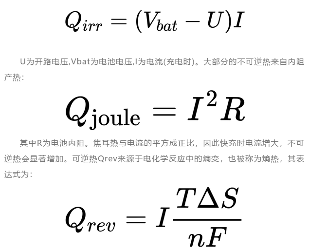 鋰離子電池的產(chǎn)熱可分為可逆和不可逆過(guò)程。其中不可產(chǎn)熱Qirr的表達(dá)式如下:
