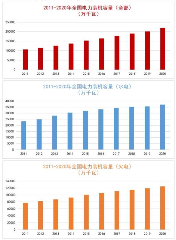 2011-2020年全國(guó)分類型電力裝機(jī)容量如下: