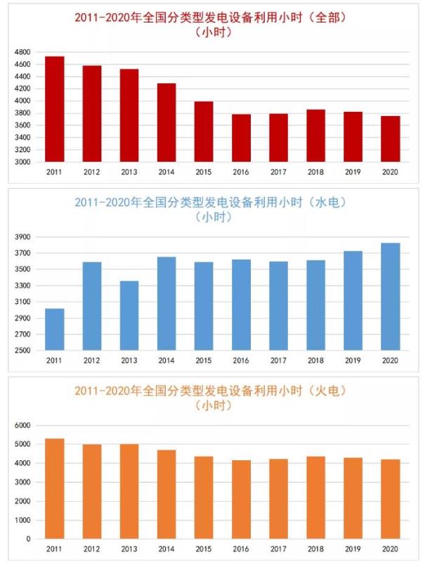 以下是2011-2020年全國(guó)各類型發(fā)電設(shè)備利用小時(shí)情況。