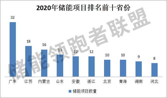 中國(guó)儲(chǔ)能網(wǎng)訊:2020年,隨著3060碳達(dá)峰和碳中和目標(biāo)的提出,我國(guó)電力去碳化、清潔化進(jìn)程將再次提速,包括儲(chǔ)能在內(nèi)的新能源行業(yè)進(jìn)入發(fā)展“快車道”。作為風(fēng)電、光伏平價(jià)時(shí)代高比例消納可再生能源的關(guān)鍵支撐和削峰填谷保障并網(wǎng)安全的必要保障,儲(chǔ)能在促進(jìn)全球電力低碳轉(zhuǎn)型進(jìn)程中不可或缺。相信在“十四五”期間,儲(chǔ)能行業(yè)將迎來商業(yè)化、規(guī)模化的重要發(fā)展窗口期。據(jù)EESA統(tǒng)計(jì),2020年共有193個(gè)儲(chǔ)能項(xiàng)目有動(dòng)態(tài)更新(處于施工安裝、竣工驗(yàn)收階段),規(guī)??傆?jì)為3604.093MW / 5825.966MWh。其中排名前十的省份分別是廣東省、江蘇省、內(nèi)蒙古、山東省、安徽省、浙江省、北京市、青海省、湖南省、河北省。廣東省作為2020年的儲(chǔ)能大省,儲(chǔ)能項(xiàng)目共32個(gè),位居中國(guó)第一。