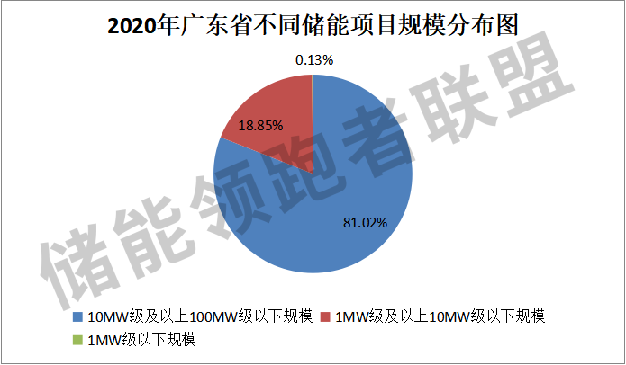 2020年廣東省不同儲(chǔ)能項(xiàng)目規(guī)模分布圖: