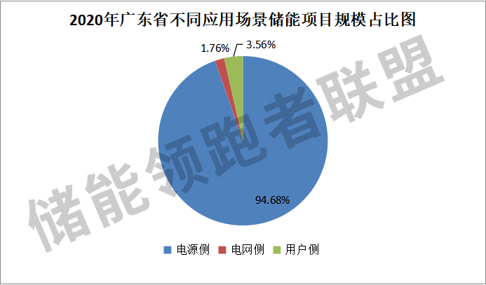 2020年廣東省不同應(yīng)用場(chǎng)景儲(chǔ)能項(xiàng)目規(guī)模占比圖: