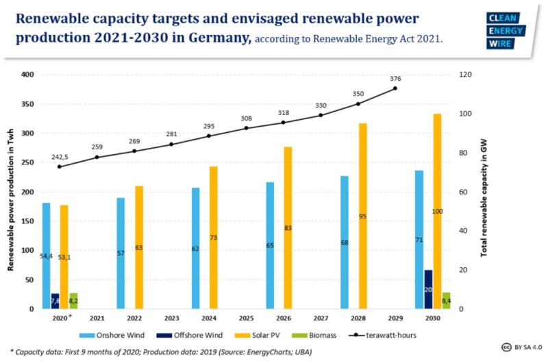 中國儲能網(wǎng)訊:德國具有里程碑意義的可再生能源法案(EEG2021)去年2020年12月17日獲得議會通過,并于2021年1月1日生效。