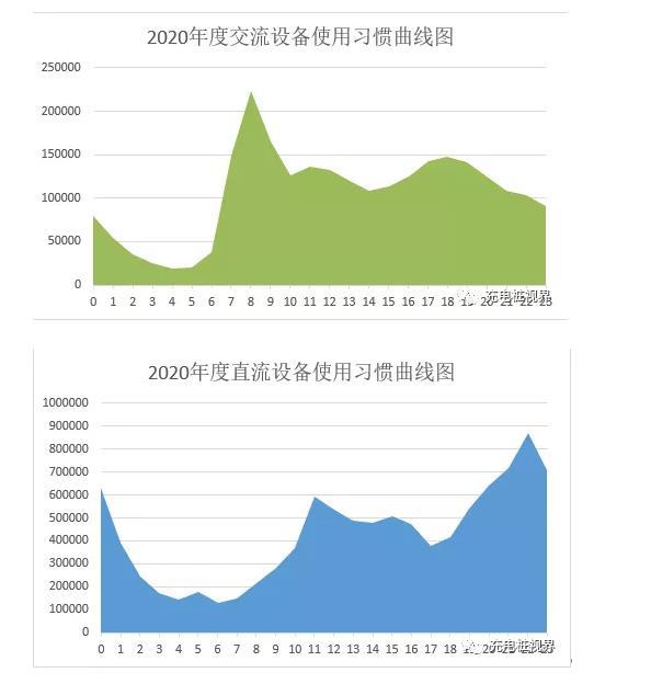按照設備的類型,2020年度交直流(快慢充)設備的啟動訂單量按時間分布的曲線。