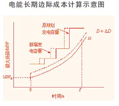 在容量邊際成本方面,長期容量邊際成本就是容量投資費用與峰荷增量的比值。對于一個優(yōu)化規(guī)劃的系統(tǒng),對應(yīng)于新增負荷的擴展方案應(yīng)該是原規(guī)劃方案中新建發(fā)電廠投產(chǎn)年的提前或增加調(diào)峰機組如燃汽輪機或水電機組。