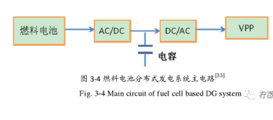 燃料電池是一種不經(jīng)過燃燒直接以電化學反應(yīng)方式將富氫燃料的化學能轉(zhuǎn)化為電能的發(fā)電裝置。從理論上講,燃料電池可將燃料能量的 90%轉(zhuǎn)化為可利用的電和熱。而且,燃料電池的效率與其規(guī)模無關(guān),因而在保持高燃料效率時,燃料電池可在其半額定功率下運行。它與光伏發(fā)電都是直接給電網(wǎng)供電。其單體輸出電壓隨電流增大而下降,在一定電流范圍內(nèi)電極極化壓降變化不大。另外,單體輸出電壓隨燃氣利用率增大而下降,這是因為燃料氣的總量輸入保持在不變的情況下,燃氣利用率與氫氣輸入量成反比,與電池電流密度成正比。這樣,燃氣利用率的增加會使實際參加反應(yīng)的氫氣量減少(電池電流密度不變),從而導致電池的輸出電壓降低。在輸入氣體如氫氣和氧氣保持不變的情況下,燃料電池電壓和電流密度二者之間具有很好的線性關(guān)系,因此我們可以把燃料電池穩(wěn)態(tài)運行時看作是一個獨立電壓源和內(nèi)部歐姆電阻的模型。因此燃料電池在并網(wǎng)時可以等值為一個電壓源與一個電阻。