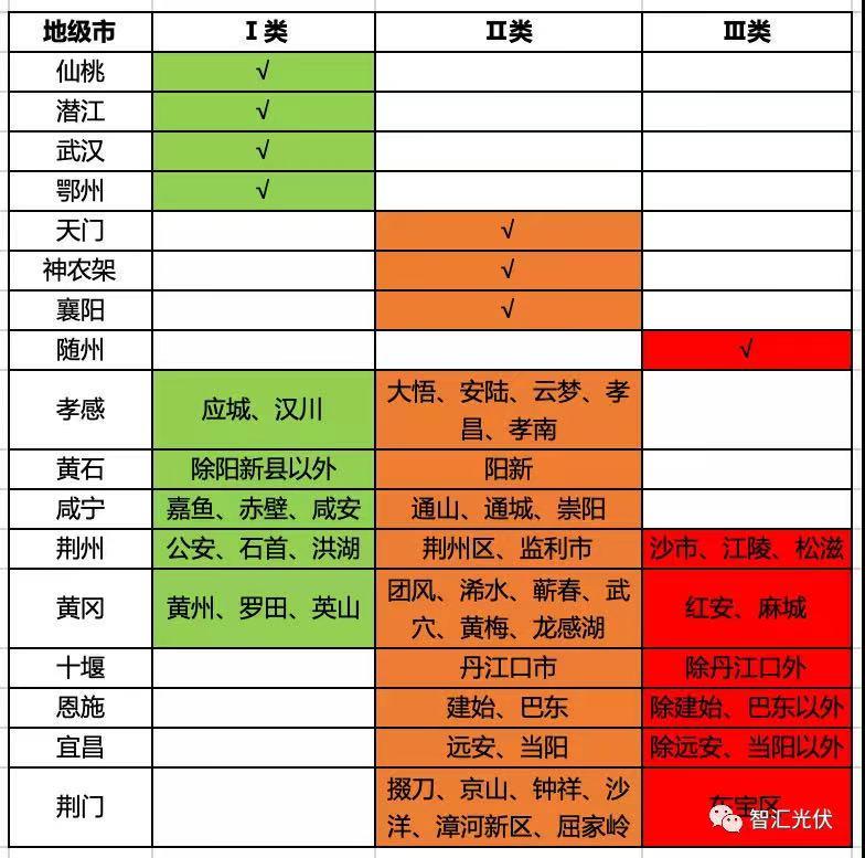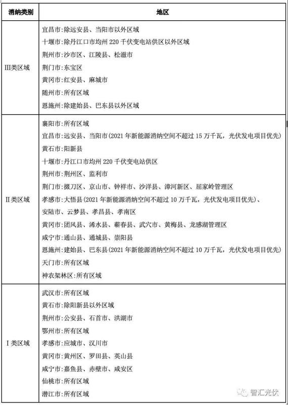 中國儲能網(wǎng)訊:近日,湖北省發(fā)改委下發(fā)《湖北省能源局關(guān)于印發(fā)2021年度新能源消納指引的通知》,將湖北省全區(qū)分為三類地區(qū),如下表所示。