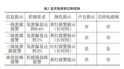 氫泄漏報警分為四類,其一是氫濃度傳感器故障,另外三類是三級泄露報警,按照氫泄露濃度不同依次為輕度報警、中度報警和緊急報警。