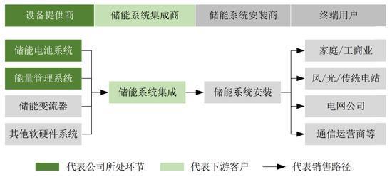 由于儲能系統(tǒng)集成涉及的電氣設(shè)備較多、專業(yè)性較強(qiáng),因此一般由系統(tǒng)集成商對整個儲能系統(tǒng)的設(shè)備進(jìn)行選型,匹配集成給下游的安裝商,才最終安裝交付給終端用戶。