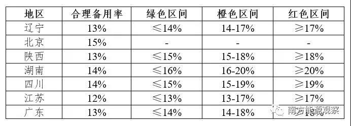 因為電網(wǎng)規(guī)模、發(fā)用電結(jié)構(gòu)不同,各地的合理備用率有所差別,部分區(qū)域合理備用率如下表所示: