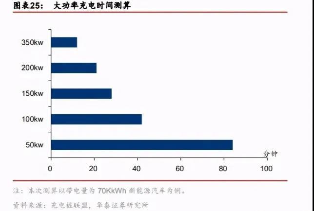 這兩種規(guī)格的充電樁基本上算是市面上比較大功率的充電樁了。按照華泰證券做的充電時(shí)間測(cè)算,80kw、160kw的充電樁至少也得半個(gè)小時(shí)才能充滿。