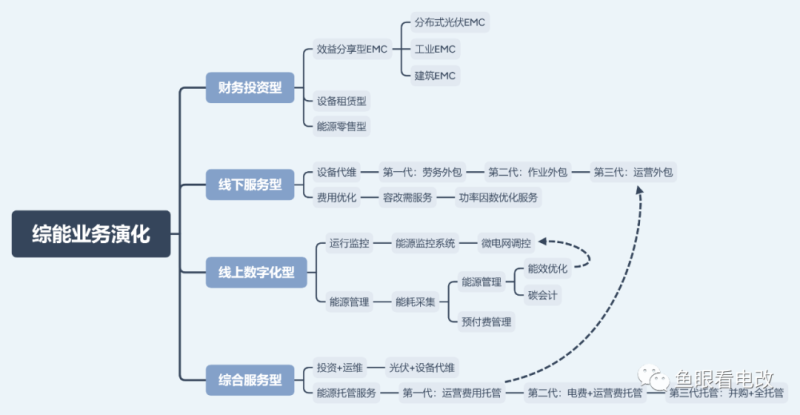 個(gè)人認(rèn)為未來最大的綜合服務(wù)型創(chuàng)新機(jī)會(huì),在于以能源托管服務(wù)為形態(tài)的組合式創(chuàng)新,從目前看正在螺旋式的迭代三種不同的子類型。
