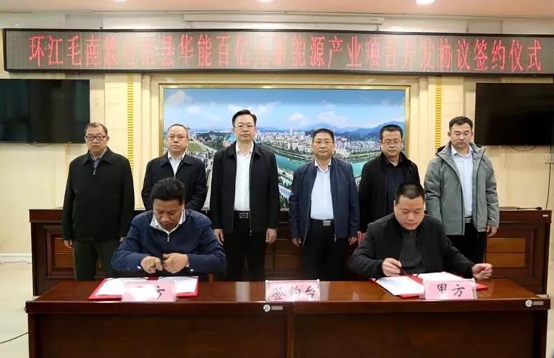 環(huán)江毛南族自治縣百億元新能源產(chǎn)業(yè)項(xiàng)目開(kāi)發(fā)協(xié)議簽約儀式現(xiàn)場(chǎng)