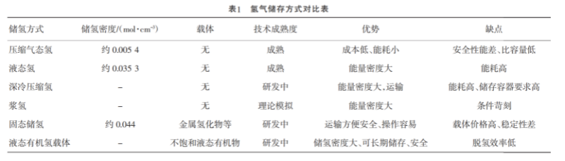 迄今為止,只有壓縮和液化的物理儲(chǔ)存方法才具有商業(yè)價(jià)值。因?yàn)橄鄬?duì)其他技術(shù)而言,加壓壓縮或者極低溫液化的操作更容易實(shí)現(xiàn),氫也更便于運(yùn)輸至終端用戶。從將氫能逐步示范推廣,并成為未來一種重要交通燃料的意義上看,能夠保障將車用氫能安全、經(jīng)濟(jì)的配送到加氫站,并完成車輛加注的解決方案將尤為重要,是其能夠?qū)崿F(xiàn)產(chǎn)業(yè)化發(fā)展的先決條件。加氫站需要解決氫能產(chǎn)業(yè)從制備到使用過程中的供應(yīng)及加注問題,為能源消費(fèi)模式轉(zhuǎn)變加速賦能,為未來出行減排,氫氣儲(chǔ)存方式對(duì)比表見表1。