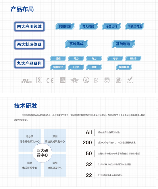 昆宇電源擁有六大智造基地,占地1000畝,廠房面積30萬(wàn)平方米;四大研發(fā)中心提供技術(shù)保障;九大產(chǎn)品系列(電芯、BMS、通信、UPS、電力、家儲(chǔ)、動(dòng)力、鉛酸替代、圓柱鎳氫電池和鋰電池),200余種產(chǎn)品類別。公司產(chǎn)品通過(guò)了美國(guó)UL、歐盟CE、韓國(guó)KC、印度BIS等眾多海外資質(zhì)認(rèn)證。
