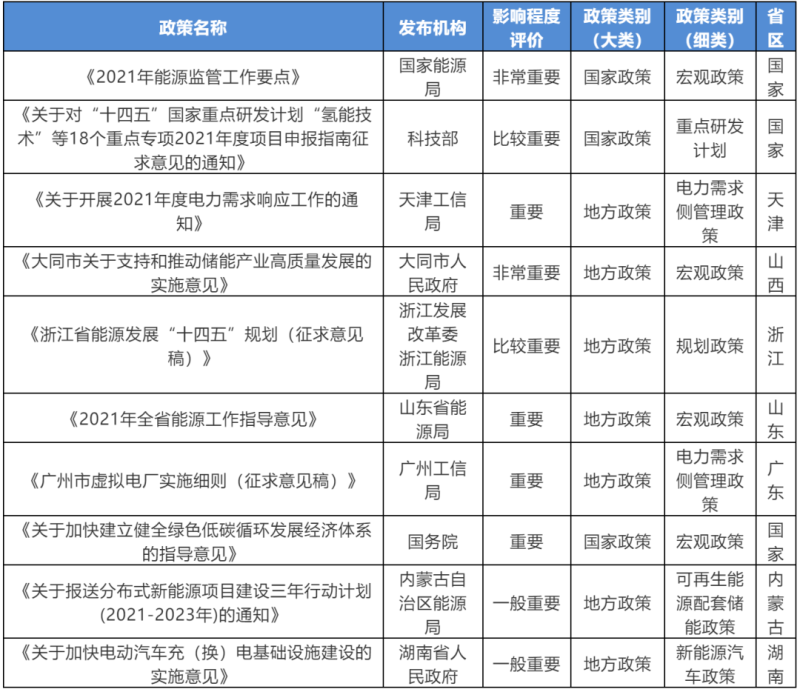 當前,政策和市場環(huán)境是促進我國儲能產業(yè)發(fā)展的關鍵。在進入“十四五”發(fā)展的新階段,儲能在未來我國能源體系建設中的關鍵地位越發(fā)突顯,面對儲能商業(yè)化和規(guī)?;l(fā)展的需求,儲能聯盟一直在努力協同聯盟會員企業(yè)積極引導儲能政策和市場環(huán)境的改善。自2020年3月起,中關村儲能產業(yè)技術聯盟每月定期向產業(yè)同仁分享儲能直接支持政策信息,望各方與儲能聯盟一同探討,推動政策研究工作,期望支持各應用領域儲能發(fā)展的配套政策盡快落地出臺。