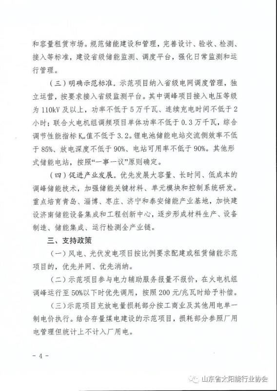 4月8日,山東省發(fā)展和改革委員會、山東省能源局、國家能源局山東監(jiān)管辦公室正式下發(fā)了《關于開展儲能示范應用的實施意見》,首批示范項目規(guī)模約50萬千瓦,政策暫定實施5年。