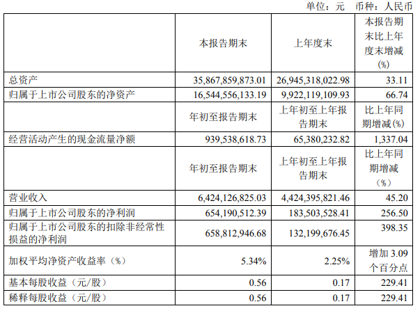 近日,華友鈷業(yè)發(fā)布2021年第一季度報告,公司1-3月實現(xiàn)營收64.24億元,較上年同期增長45.20%;歸屬于上市公司股東的凈利潤6.54億元,同比增長256.50%。