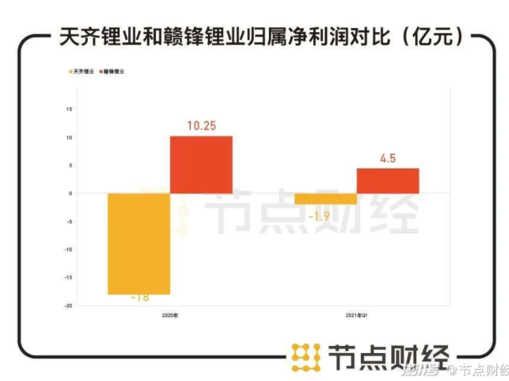 再者,就2020年業(yè)績而言,天齊鋰業(yè)也與贛鋒鋰業(yè)相差甚大。