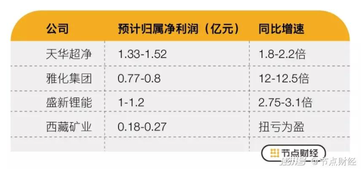 節(jié)點(diǎn)財(cái)經(jīng)梳理發(fā)現(xiàn),截至目前預(yù)告一季報(bào)業(yè)績的鋰企中,包括天華超凈、雅化集團(tuán)、盛新鋰能、西藏礦業(yè)、永興材料等,天齊鋰業(yè)是唯一一家虧損的。