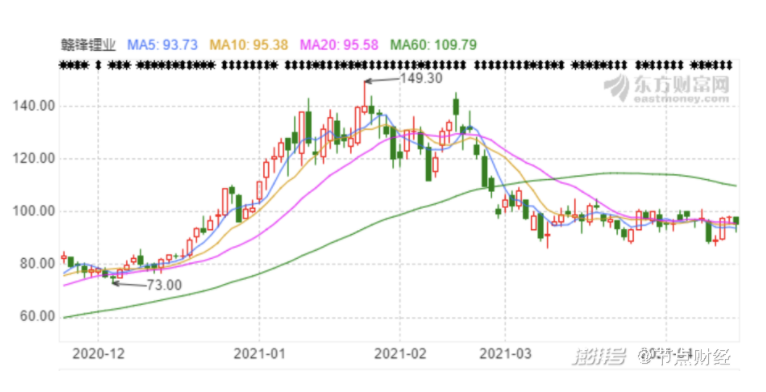 據(jù)公告顯示,2021年一季度,贛鋒鋰業(yè)預(yù)計(jì)盈利4.5億元-5.1億元,相比2020年一季度的774.61萬元,同比增長5709.38%-6483.96%。