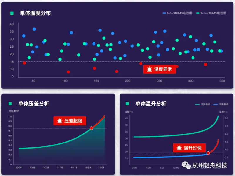 輕舟科技推出的儲能管家產(chǎn)品在電池監(jiān)測和預(yù)警方面做得非常出色。作為一款一站式智慧運維平臺,儲能管家實現(xiàn)了提前發(fā)現(xiàn)風(fēng)險電池,及時關(guān)注,降低運行風(fēng)險;統(tǒng)計分析落后電池,及時補電,保障正常運行;快速定位問題電池,及時替換,減少收益損失 等功能。
