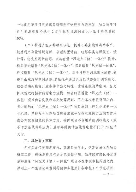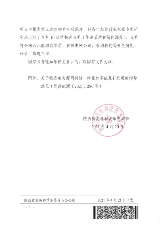 中國(guó)儲(chǔ)能網(wǎng)訊:4月20日,陜西省發(fā)改委發(fā)布《關(guān)于推進(jìn)電力源網(wǎng)荷儲(chǔ)一體化和多能互補(bǔ)項(xiàng)目示范有關(guān)工作的通知》。文件提出要求:源網(wǎng)荷儲(chǔ)一體化示范項(xiàng)目應(yīng)提出負(fù)荷側(cè)調(diào)節(jié)響應(yīng)能力的方案,項(xiàng)目每年可再生能源電量不低于2億千瓦時(shí)且消納占比不低于總電量的50%;多能互補(bǔ)示范項(xiàng)目應(yīng)提出充分發(fā)揮電源側(cè)靈活調(diào)節(jié)作用或合理配置儲(chǔ)能的具體方案,確保項(xiàng)目不占用系統(tǒng)調(diào)峰能力(或不增加系統(tǒng)調(diào)峰壓力)且每年提供清潔能源電量不低于20億千瓦時(shí)。原則上一個(gè)集團(tuán)公司源網(wǎng)荷儲(chǔ)和多能互補(bǔ)各申報(bào)1個(gè)示范項(xiàng)目,項(xiàng)目申報(bào)方案經(jīng)權(quán)威專家研究論證后于5月10日前報(bào)送。