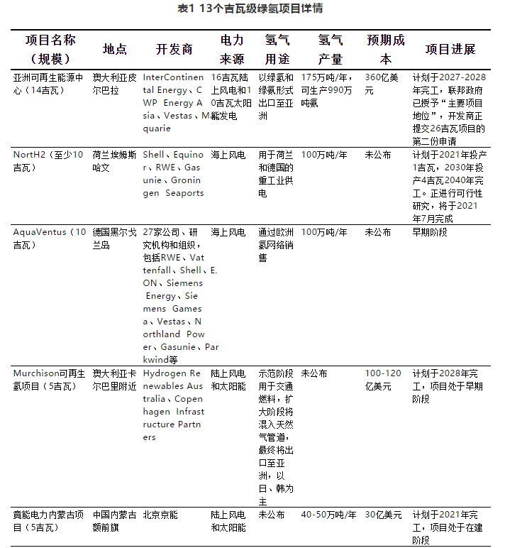 中國儲能網(wǎng)訊:盡管2020年面臨新冠疫情危機及全球經(jīng)濟衰退,但由于多個國家宣布清潔氫能的國家戰(zhàn)略,2020年全球已宣布電解制綠氫項目達到了50吉瓦,而當(dāng)前全球電解制氫設(shè)備總?cè)萘繛?0吉瓦。Rechargenews網(wǎng)站近期總結(jié)了全球13個計劃建設(shè)的吉瓦級可再生能源電解制氫項目進展,總裝機容量達到61吉瓦。詳情如下: