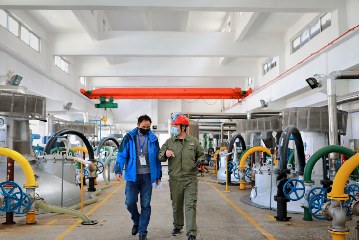 湖北宜昌高新區(qū)供電公司員工走訪宜昌三峽制藥有限公司,通過電力數(shù)據(jù)分析了解企業(yè)復(fù)工情況。高宇 攝