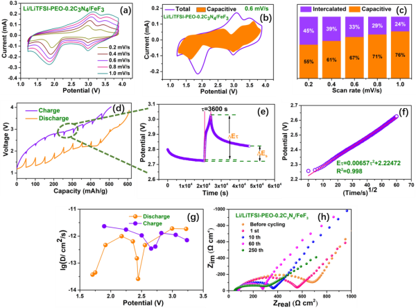 圖2.轉(zhuǎn)換反應(yīng)型鋰/氟化鐵全固態(tài)電池的動(dòng)力學(xué)性能