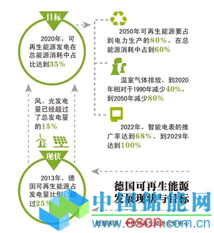 10年前,德國政府制定了2020年可再生能源發(fā)電量比例達(dá)到35%的目標(biāo)。據(jù)統(tǒng)計,2013年,德國可再生能源占發(fā)電量的比例已超過25%,德國正離自己的目標(biāo)越來越近。