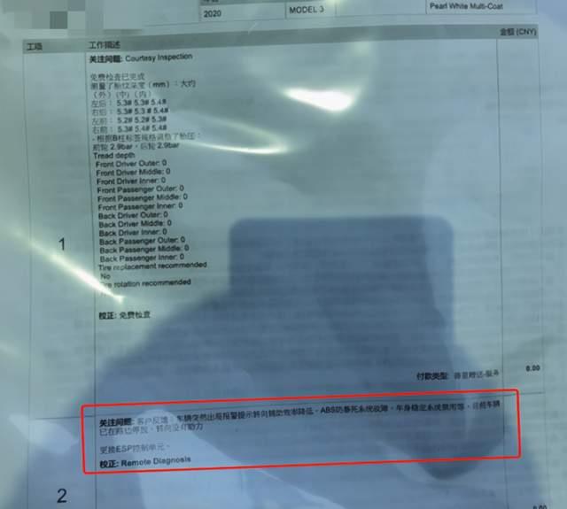 王鵬的特斯拉Model 3維修單,圖源:采訪對象