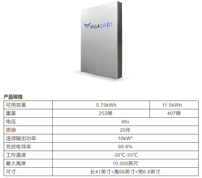 據(jù)外媒5月7日消息,VillaraEnergy Systems宣布推出其最先進的家用電池儲能產(chǎn)品VillaGrid。VillaGrid儲能系統(tǒng)(ESS)是一種鈦酸鋰電池儲能系統(tǒng),質(zhì)保期20年,具有高安全性、長壽命、高功率、高效率,全生命周期內(nèi)在最低使用成本條件下?lián)碛懈呖捎秒娏俊?